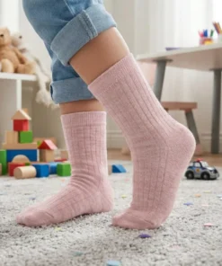 Diese MENIQUE Kinder Leichte Merino Ripp Socken | Rosa halten kleine Füsse trocken, frisch und bequem. Die weiche Merinowolle ist atmungsaktiv, feuchtigkeitsregulierend und kratzt nicht – ideal für Gummistiefel, Sneakers, Schule und Abenteuer.