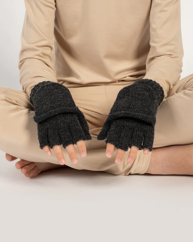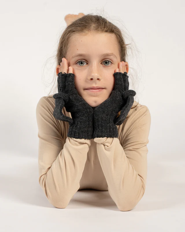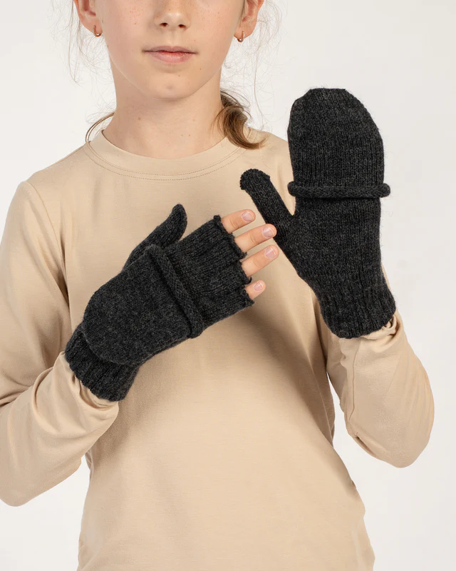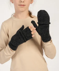 MENIQUE Kinder Strick Merino Wende-Fäustlinge Merinowoll Mix | dark gray