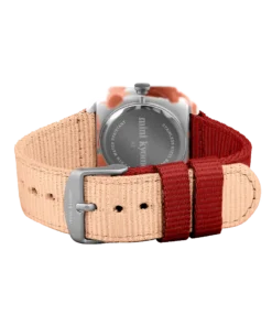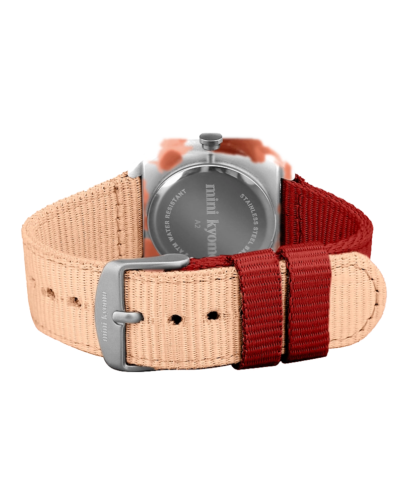 Die mini kyomo Kinder Uhr | Cinnamon Roll ist die perfekte erste Uhr für Kinder – robust, stylisch und leicht lesbar. Mit japanischem Quarzwerk, nachhaltigem Nylonarmband und liebevollem Design hilft sie spielerisch beim Uhrenlernen. Und das Beste: Sie wächst mit. Gefertigt in Italien, aus nachhaltigen Materialien und mit einem klaren Fokus auf Funktion, Stil und Umweltbewusstsein – perfekt für kleine Entdecker*innen.