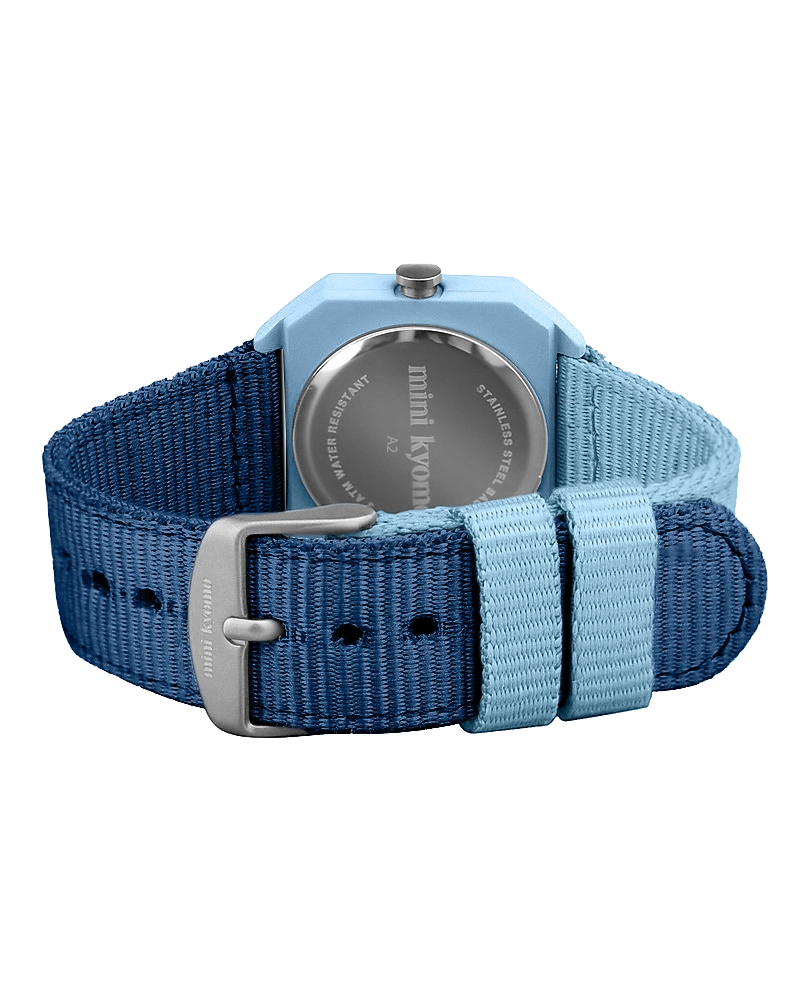 Die mini kyomo Kinder Uhr | cotton candy blau ist die perfekte erste Uhr für Kinder – robust, stylisch und leicht lesbar. Mit japanischem Quarzwerk, nachhaltigem Nylonarmband und liebevollem Design hilft sie spielerisch beim Uhrenlernen. Und das Beste: Sie wächst mit. Gefertigt in Italien, aus nachhaltigen Materialien und mit einem klaren Fokus auf Funktion, Stil und Umweltbewusstsein – perfekt für kleine Entdecker*innen.