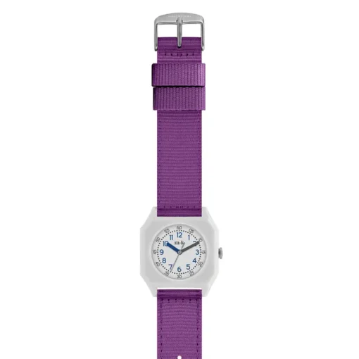 Die mini kyomo Kinder Uhr | violet ist die perfekte erste Uhr für Kinder – robust, stylisch und leicht lesbar. Mit japanischem Quarzwerk, nachhaltigem Nylonarmband und liebevollem Design hilft sie spielerisch beim Uhrenlernen. Und das Beste: Sie wächst mit. Gefertigt in Italien, aus nachhaltigen Materialien und mit einem klaren Fokus auf Funktion, Stil und Umweltbewusstsein – perfekt für kleine Entdecker*innen.