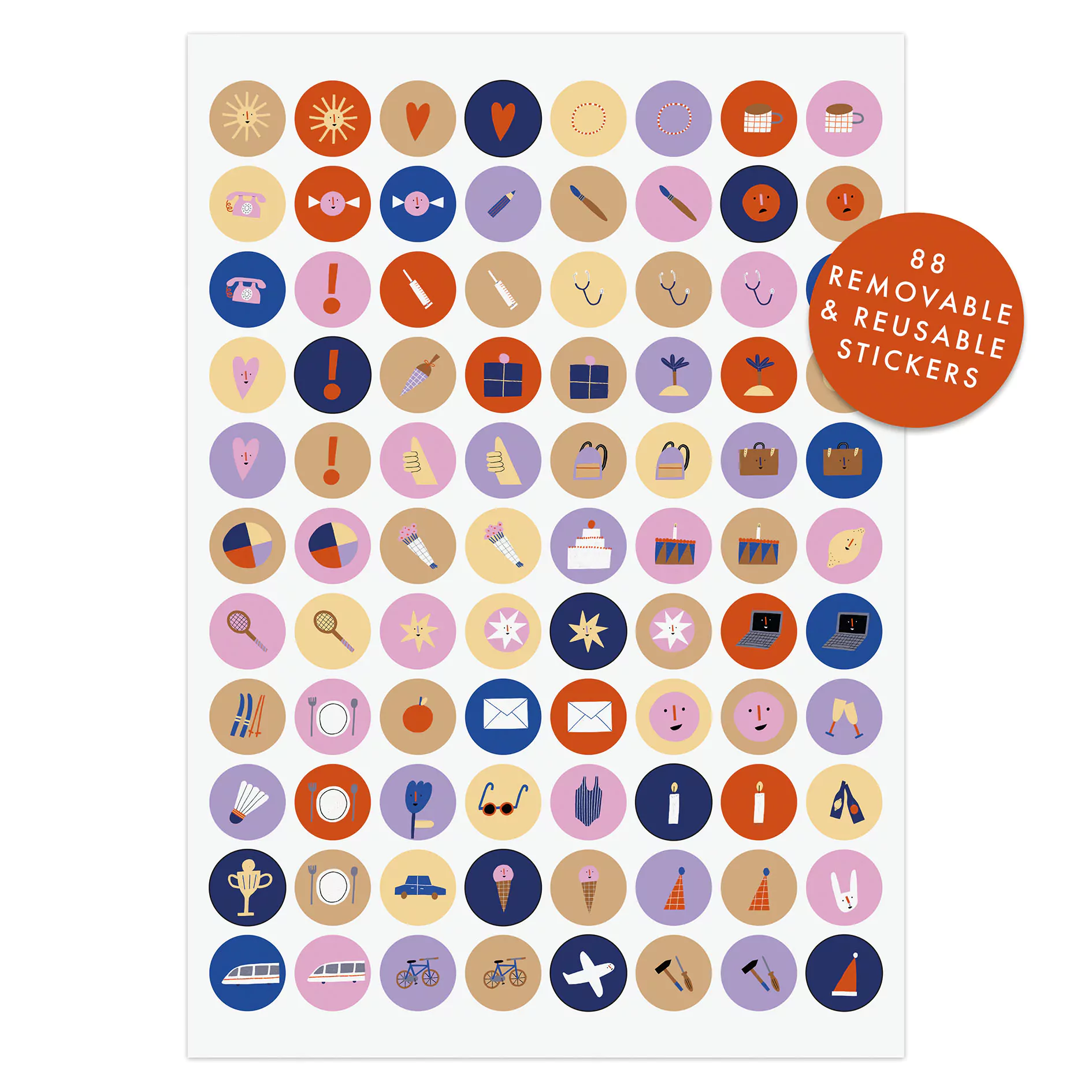 • Stickerbogen im A4-Format mit 88 Motiven