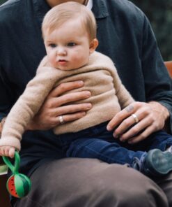 Einfach greifen, schütteln, darauf beissen – diese Rassel fördert die Sinne, beruhigt beim Zahnen und lässt sich dank Ringform überall befestigen.