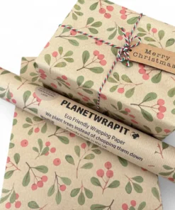 Planetwrapit Nachhaltiges Geschenkpapier Rolle 5mx50cm | Christmas Mistletoe
