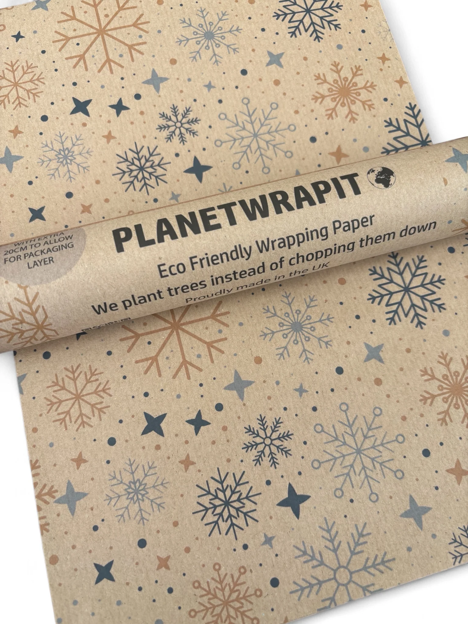 Planetwrapit Nachhaltiges Geschenkpapier Rolle 5mx50cm | Christmas Snowflake