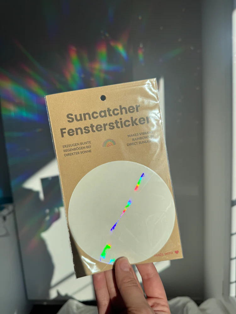 Bring Sonne und Farbe in dein Zuhause: Der Plottkowski Suncatcher Window Sticker | Kreis XL verwandelt Sonnenlicht in tanzende Regenbögen und sorgt sofort für gute Laune. Einfach ans Fenster kleben und magische Lichtmomente geniessen – kleine Alltagsfreude mit grosser Wirkung.