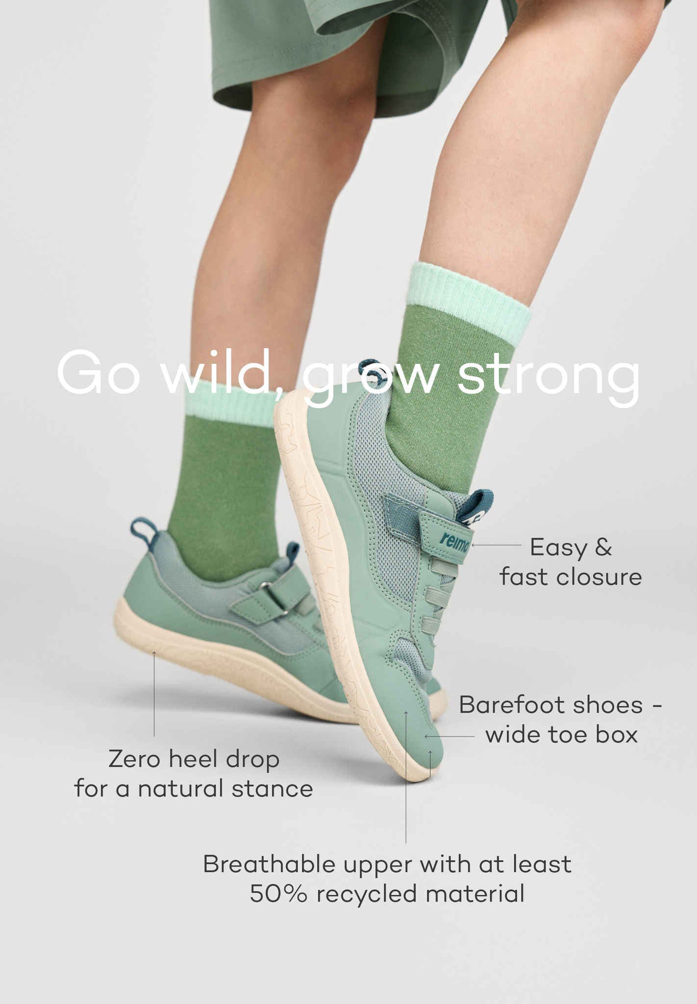 Die Reima Kinder Barfussschuhe TELMIN | light heather sind leichte und atmungsaktive Begleiter für aktive Tage. Gezielte Verstärkungen bieten zusätzlichen Schutz, während die flexible Barfusssohle natürliche Bewegungsfreiheit unterstützt – ideal für Alltag, Spaziergänge und Abenteuer im Freien.