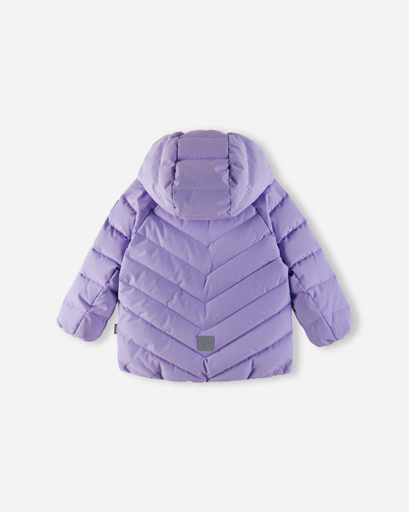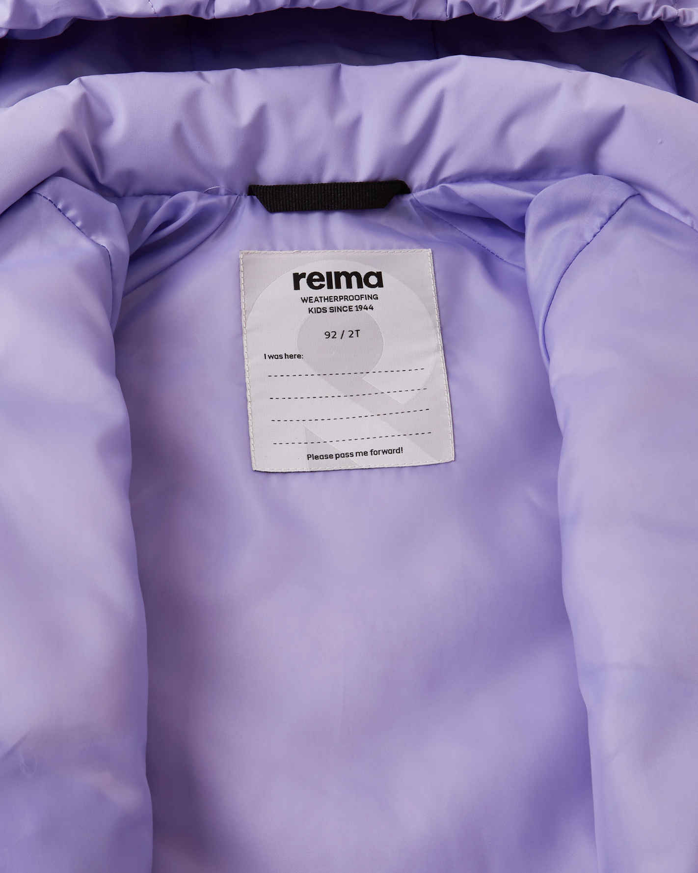 Die Reima Kleinkind Daunen Jacke KUPPONEN | blooming lilac ist eine federleichte Daunenjacke für Kleinkinder, die durch Wärmeleistung, Funktionalität und Komfort überzeugt. Mit wasser- und winddichtem Material, hochwertiger Daunenfüllung und recycelten Komponenten ist sie der perfekte Begleiter für kalte Tage – ganz ohne Kompromisse.