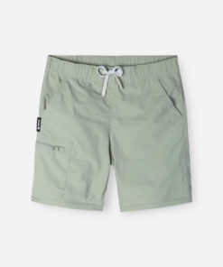 Die REIMA Wanderhose Muunto (2nd Season) | sage green ist eine leichte und funktionale Sommerhose, die sich dank abzippbarer Hosenbeine im Handumdrehen in Shorts verwandeln lässt. Hergestellt aus schnell trocknendem, feuchtigkeitsregulierendem Material mit UV-Schutz 50+, bietet sie optimalen Komfort und Schutz bei allen Outdoor-Abenteuern. Der elastische Bund mit Kordelzug sorgt für eine individuelle Passform, während mehrere Taschen, darunter eine Reissverschlusstasche am Oberschenkel, Platz für kleine Schätze bieten.