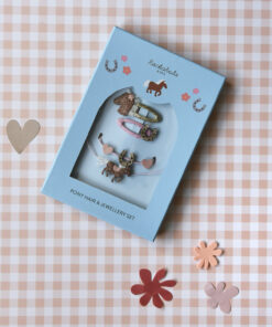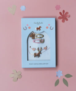 Perfekt für den Alltag oder besondere Anlässe: Ob im Haar, am Handgelenk oder als funkelndes Detail am Hals – das Set bringt Kinderaugen zum Leuchten und verleiht jedem Outfit einen Hauch von Ponyhof-Magie.