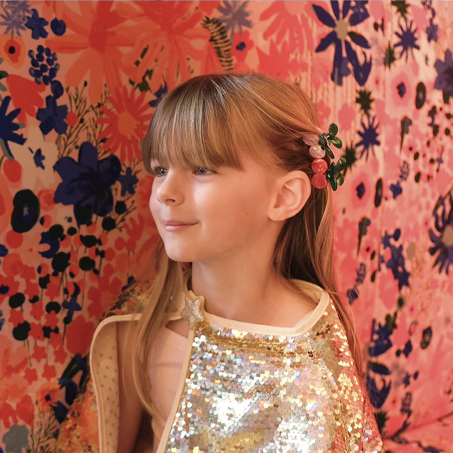 Diese glitzernde Rockahula Haarklammer Set | Sweet Cherries sorgt für Stimmung im Haar! Dank kleiner Zähnchen bleibt er sicher an Ort und Stelle – ideal für Weihnachtsfeiern, Familienfeste & Co.