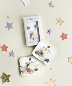 Rockahula ist eine trendige und kreative Marke, die sich auf einzigartige Accessoires und Schmuck für Kinder spezialisiert hat. Mit einem verspielten und farbenfrohen Designansatz bietet Rockahula eine breite Palette von Produkten, darunter Haarschmuck, Taschen und Schals, die Kindern einen Hauch von Spaß und Stil verleihen. Die Marke legt Wert auf hochwertige Materialien und kindersichere Designs, um Eltern und Kinder gleichermaßen zu begeistern. Rockahula schafft eine fröhliche und modische Welt für die jungen Abenteurer von heute.