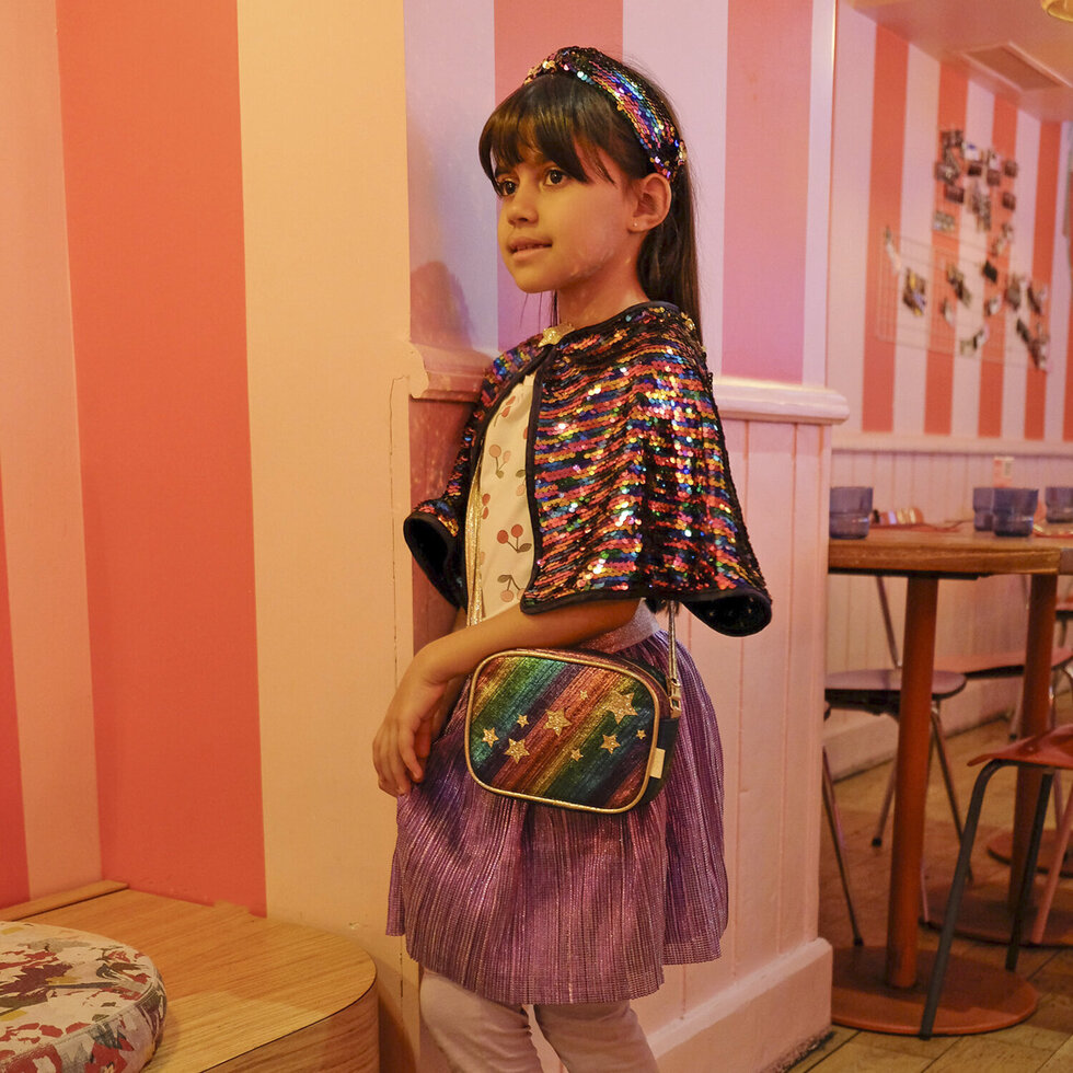 Ein echtes Highlight für festliche Anlässe: Dieser breite Rockahula Pailletten Haarreif | rainbow mit glitzerndem Pailletten-Detail sorgt für funkelnde Auftritte und sitzt dank weichem Ripsband bequem.