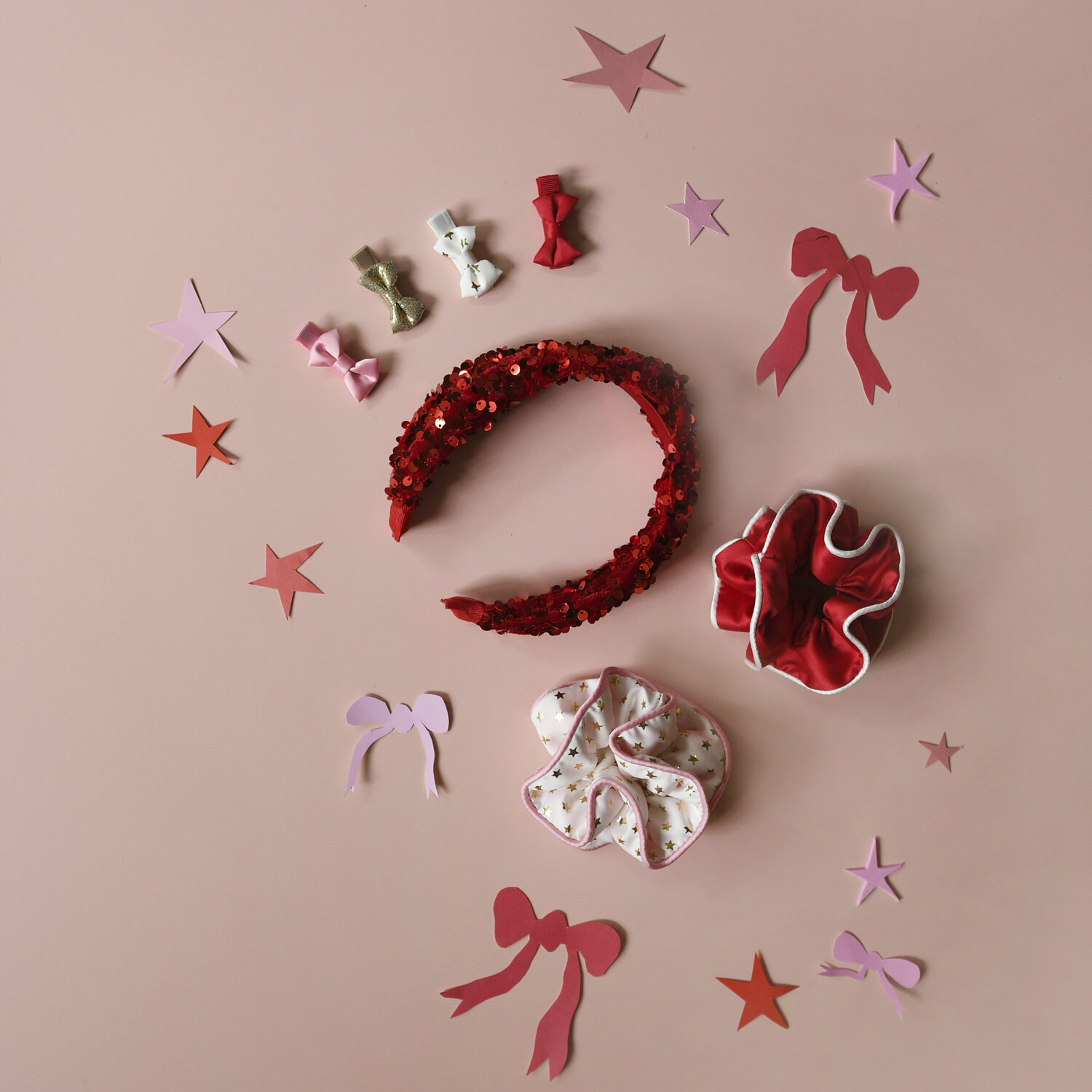 Ein echtes Highlight für festliche Anlässe: Dieser breite Rockahula Pailletten Samt Haarreif | red mit glitzerndem Pailletten-Detail sorgt für funkelnde Auftritte und sitzt dank weichem Ripsband bequem – perfekt für Winterfeste!