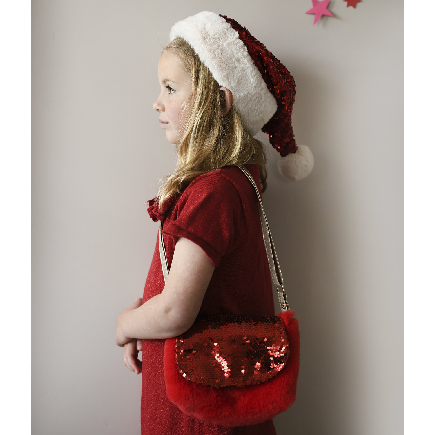 - Glänzender roter Paillettenbesatz – funkelnd wie Weihnachtslichter