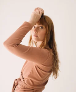 Das Tiralahilacha ERW Damen Bio-Baumwolljersey Wickeltop TAYRA | rose bringt feminine Eleganz und Alltagstauglichkeit in Einklang. Der weiche, dehnbare Bio-Baumwolljersey schmiegt sich angenehm an Deinen Körper – perfekt zum Wohlfühlen, Stylen und Kombinieren, Tag für Tag.