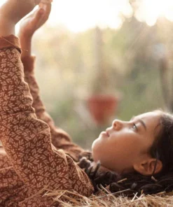 Das Tiralahilacha Kinder Oversize Kleid mit Taschen Sally | Terrakottablätter vereint Stil, Komfort und Nachhaltigkeit. Dieses locker geschnittene Kleid ist aus 100% GOTS-zertifizierter Bio-Baumwolle gefertigt und bietet deinem Kind ein angenehmes Tragegefühl und optimale Bewegungsfreiheit. Der lockere Schnitt und die praktischen Seitentaschen machen es zum perfekten Begleiter für den Alltag. Das schlichte, aber elegante Design in warmem Terrakotta verleiht dem Kleid eine zeitlose Note, die es vielseitig kombinierbar macht – ob für den Alltag oder besondere Anlässe.