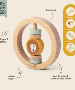 Kleine Hände lieben es zu entdecken: Die Trixie Baby Holzrassel rund (ab 6m +) | Löwe bietet viele spannende Elemente zum Greifen und Erforschen. Beim Schütteln macht sie ein fröhliches Rasselgeräusch und fördert spielerisch die Sinne sowie die Feinmotorik – ideal ab 6 Monaten.