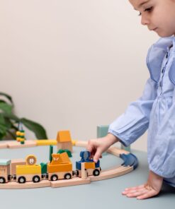 Kinder bauen ihre eigene Bahnstrecke, verbinden die Waggons und starten ihr Zugabenteuer. Der Abakus hilft beim Zählen der Runden – ideal für gemeinsames Spielen oder erste Zahlenübungen.
