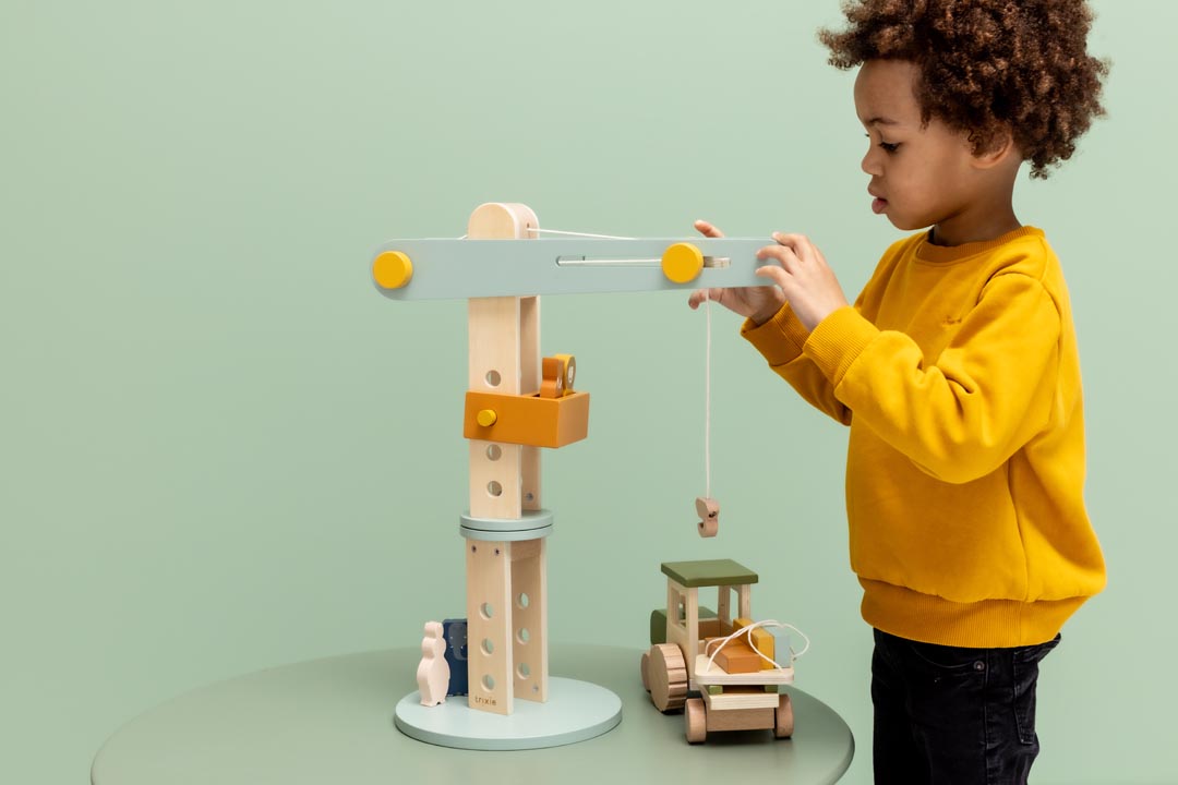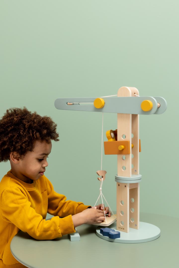 Einfach die Plattform beladen, Lasten heben und gezielt platzieren – Kinder entwickeln spielerisch ihr technisches Verständnis und erleben eigene Bauabenteuer.