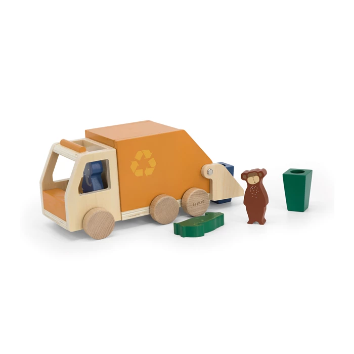 Ein liebevoll gestalteter Holz-Müllwagen, der spielerisch das Bewusstsein für Recycling fördert. Mit 3 süssen Tierfiguren und 2 Mülltonnen können Kinder Alltagsszenen nachspielen und dabei etwas über Umweltschutz lernen.