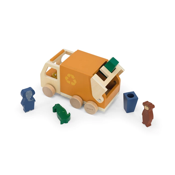 Ideal zum freien Spielen, Geschichten erzählen und als Ergänzung zu anderen Holzspielzeugen. Spielerisch lernen Kinder den Umgang mit Abfall und Recycling.