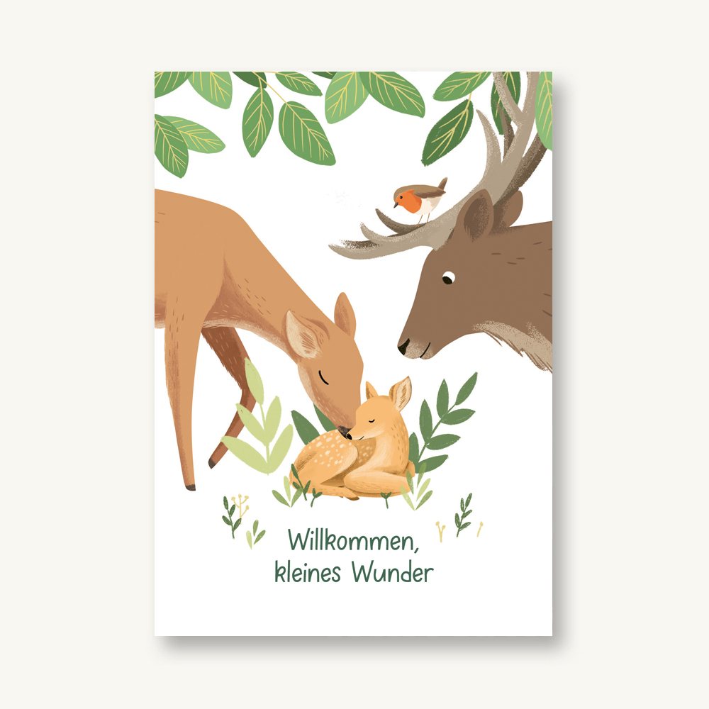 VIERUNDFÜNFZIG Postkarte | Willkommen Kleines Wunder Zur Geburt Waldtiere