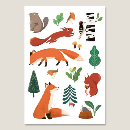 VIERUNDFÜNFZIG Wasserfeste (spülmaschinenfeste) Sticker | Waldtiere